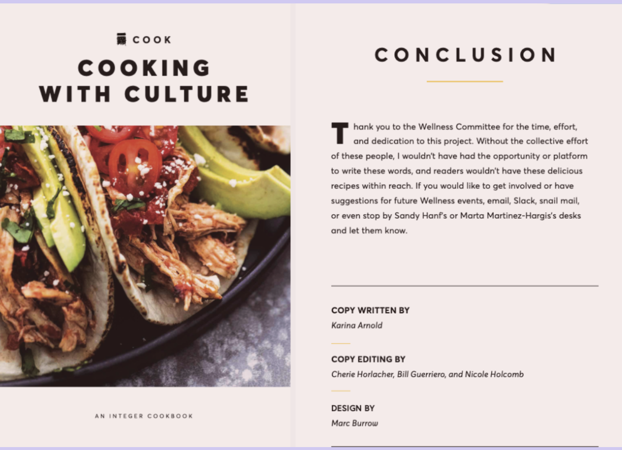 While at my first agency job, I wrote copy for the inaugural Integer cookbook: Cooking with Culture, which was distributed within the global agency network.